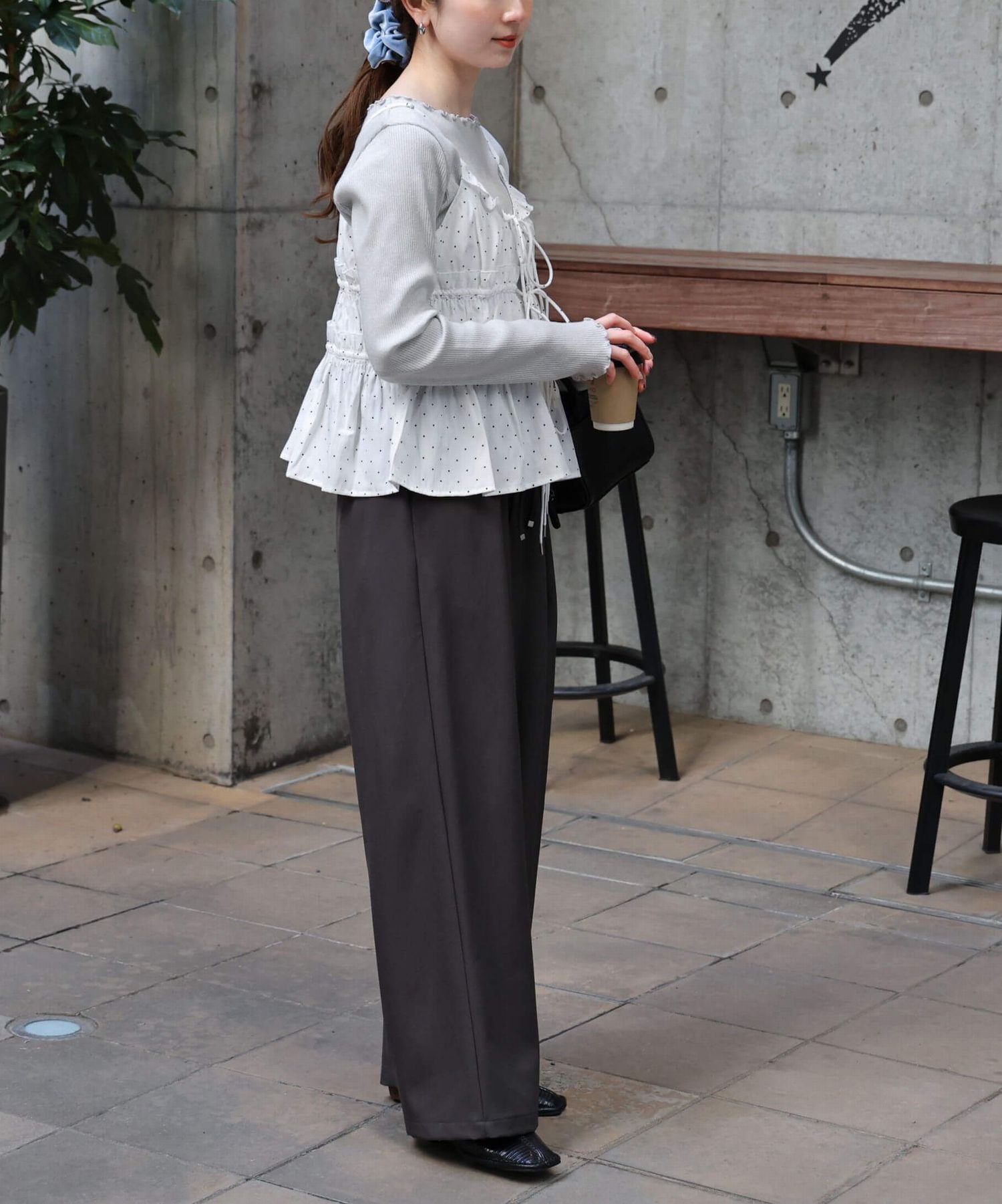・贅沢なギャザー使いが1枚で華やかなので、スウェットなど抜け感のあるコーディネートも決まります。