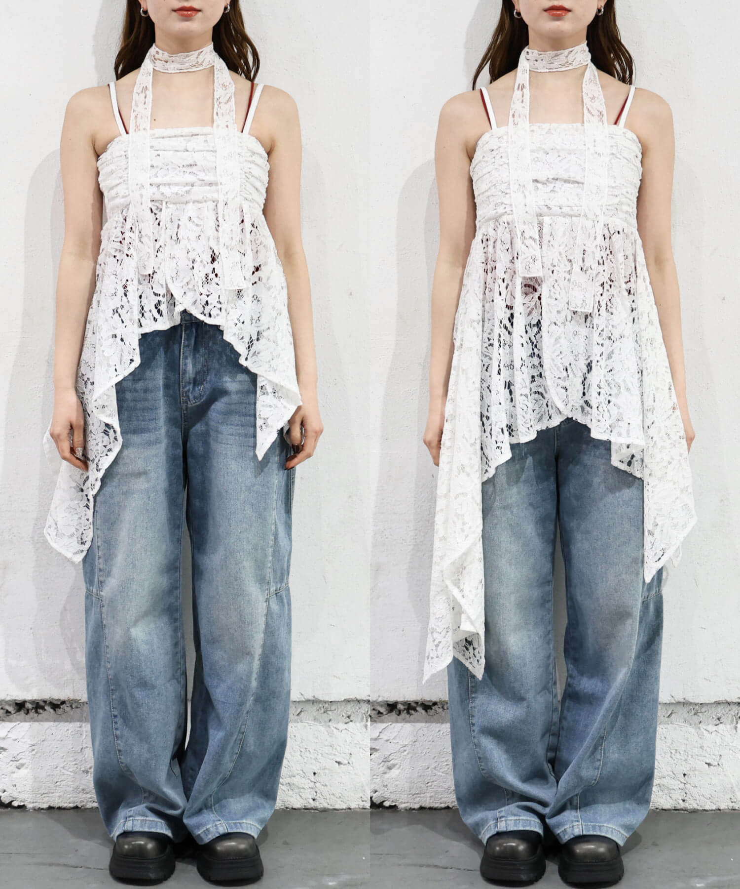 ※当アイテムはSサイズ表記ですが、チョーカー付きレースキャミチュニック(品番:165T511540)のショート丈です。フリーサイズとして着用頂けるサイズ感です。
