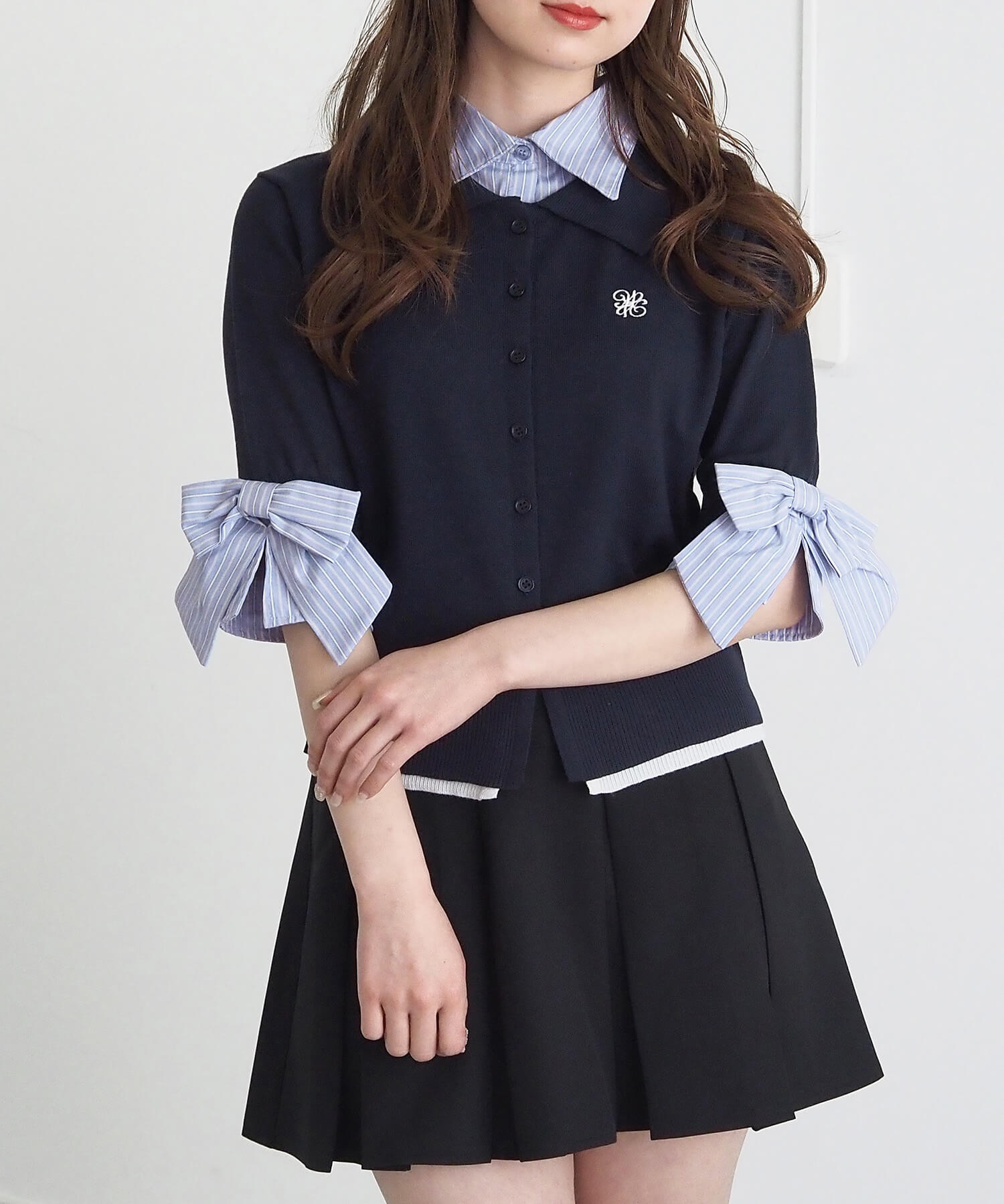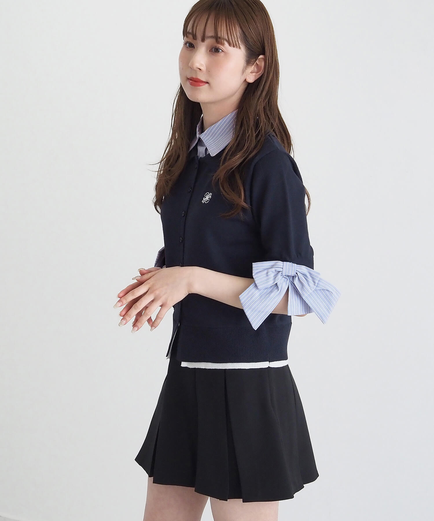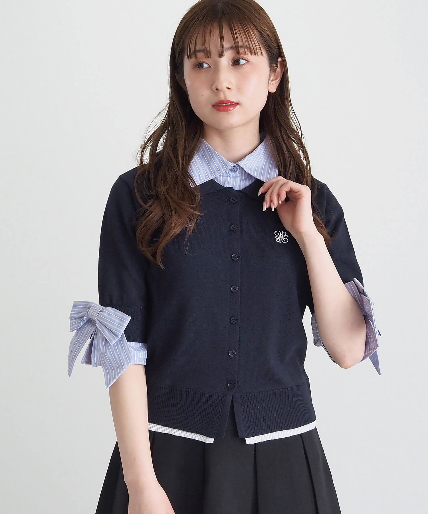 [4月7日販売開始!!] リボン布帛襟付5分袖カーディガン