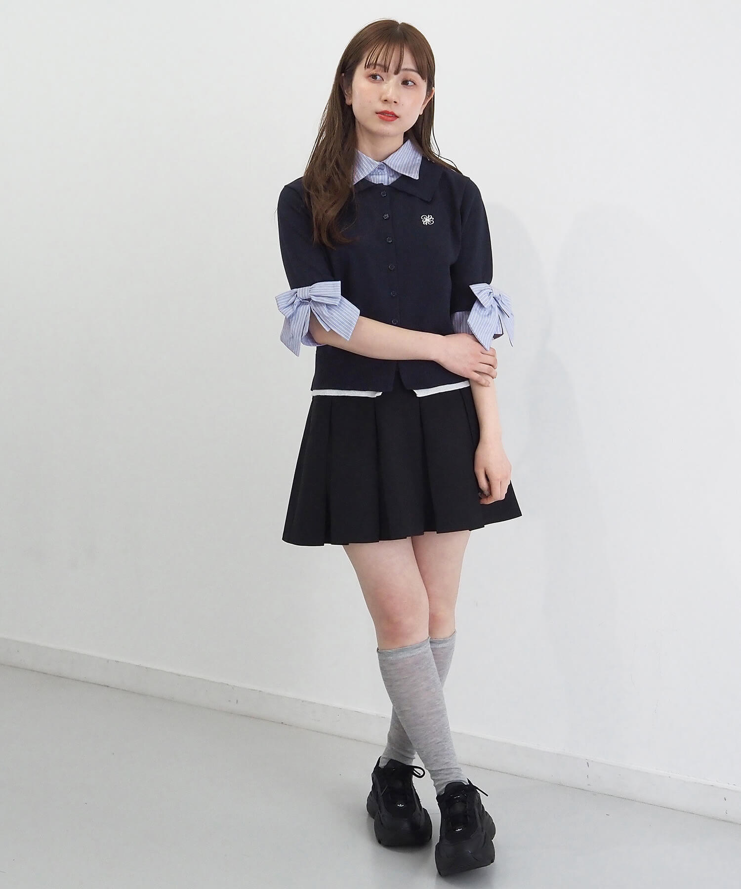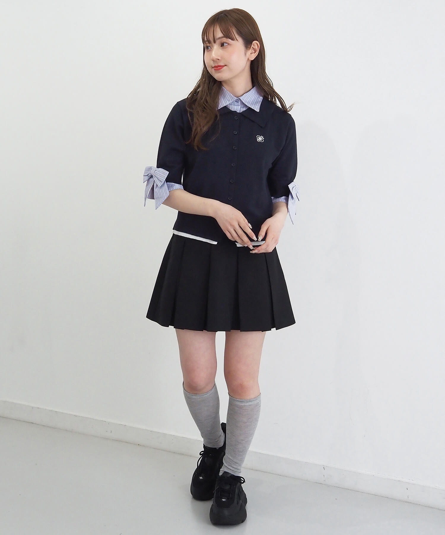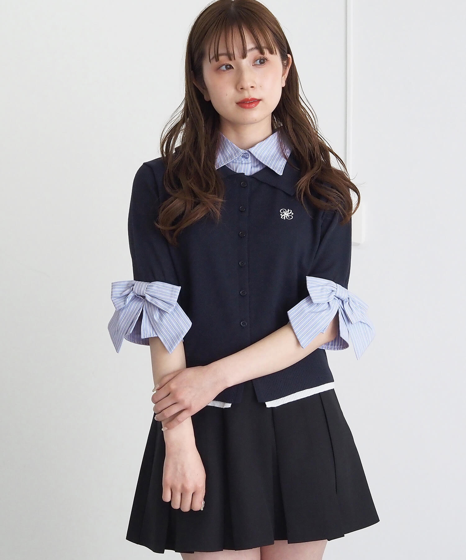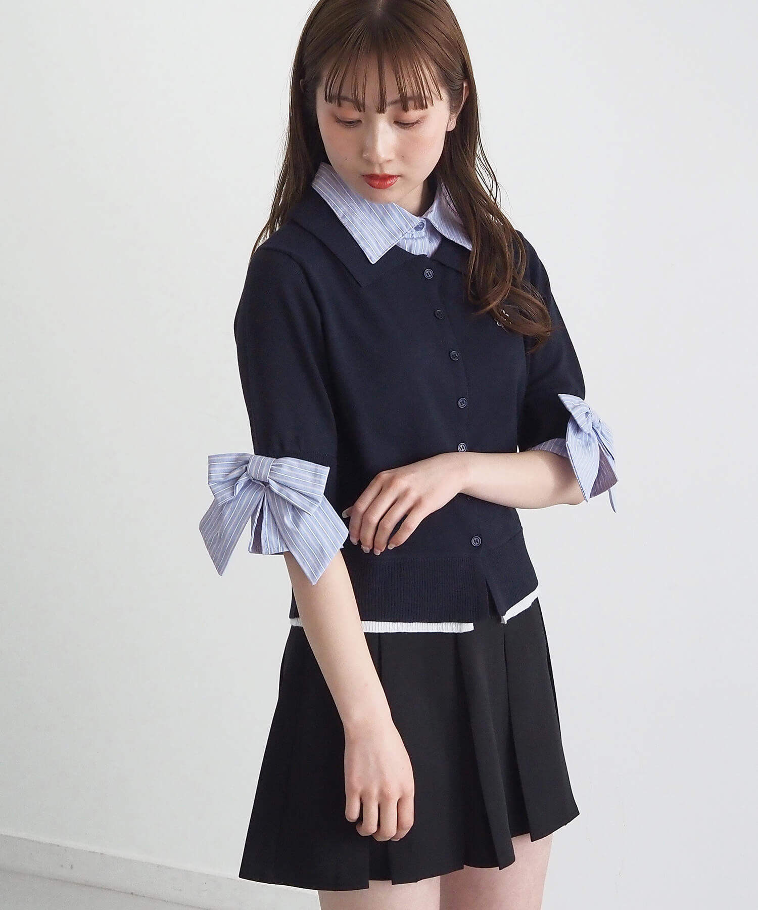 [4月7日販売開始!!] リボン布帛襟付5分袖カーディガン