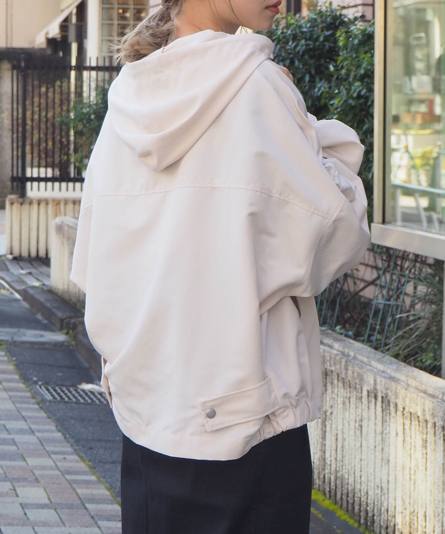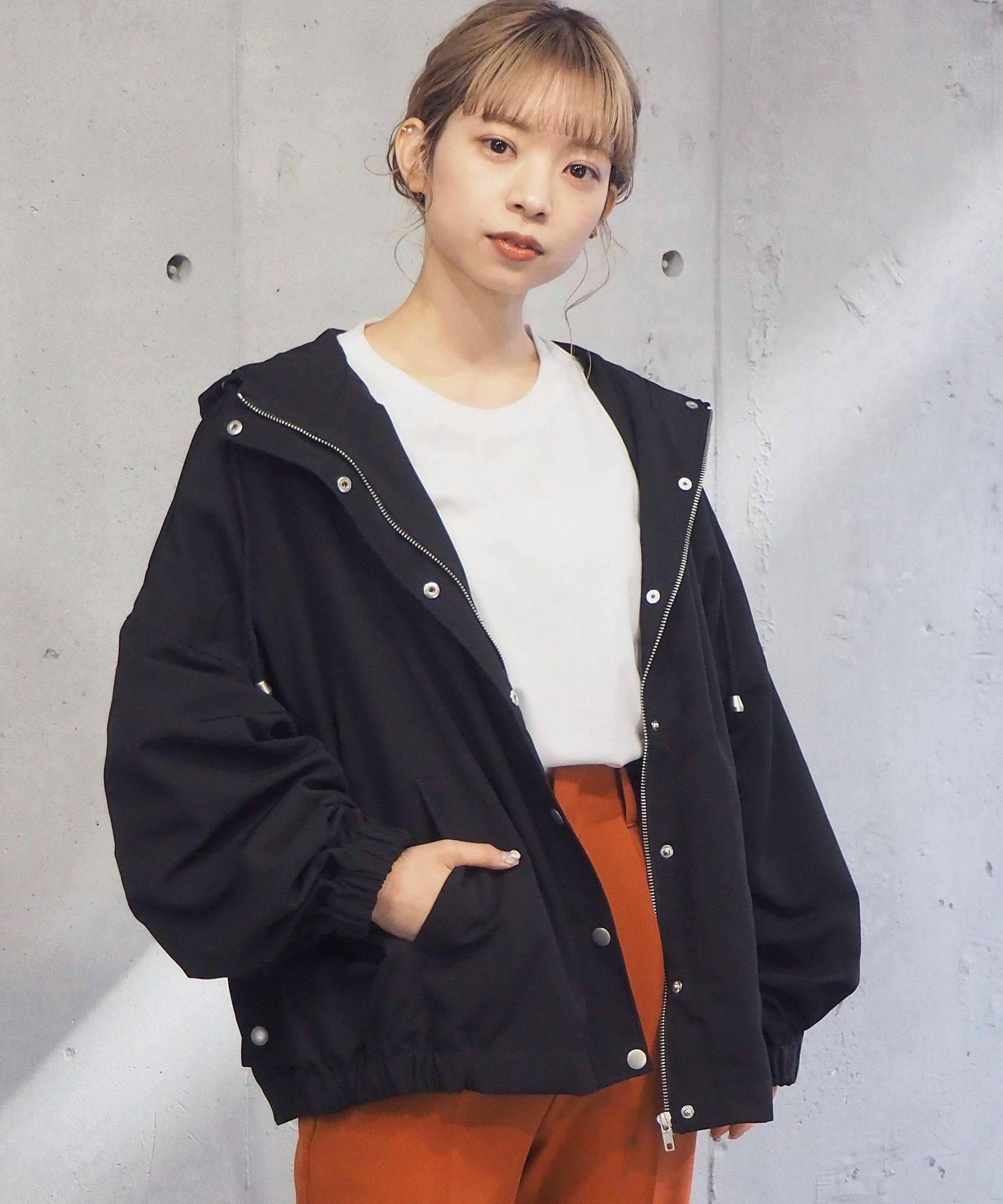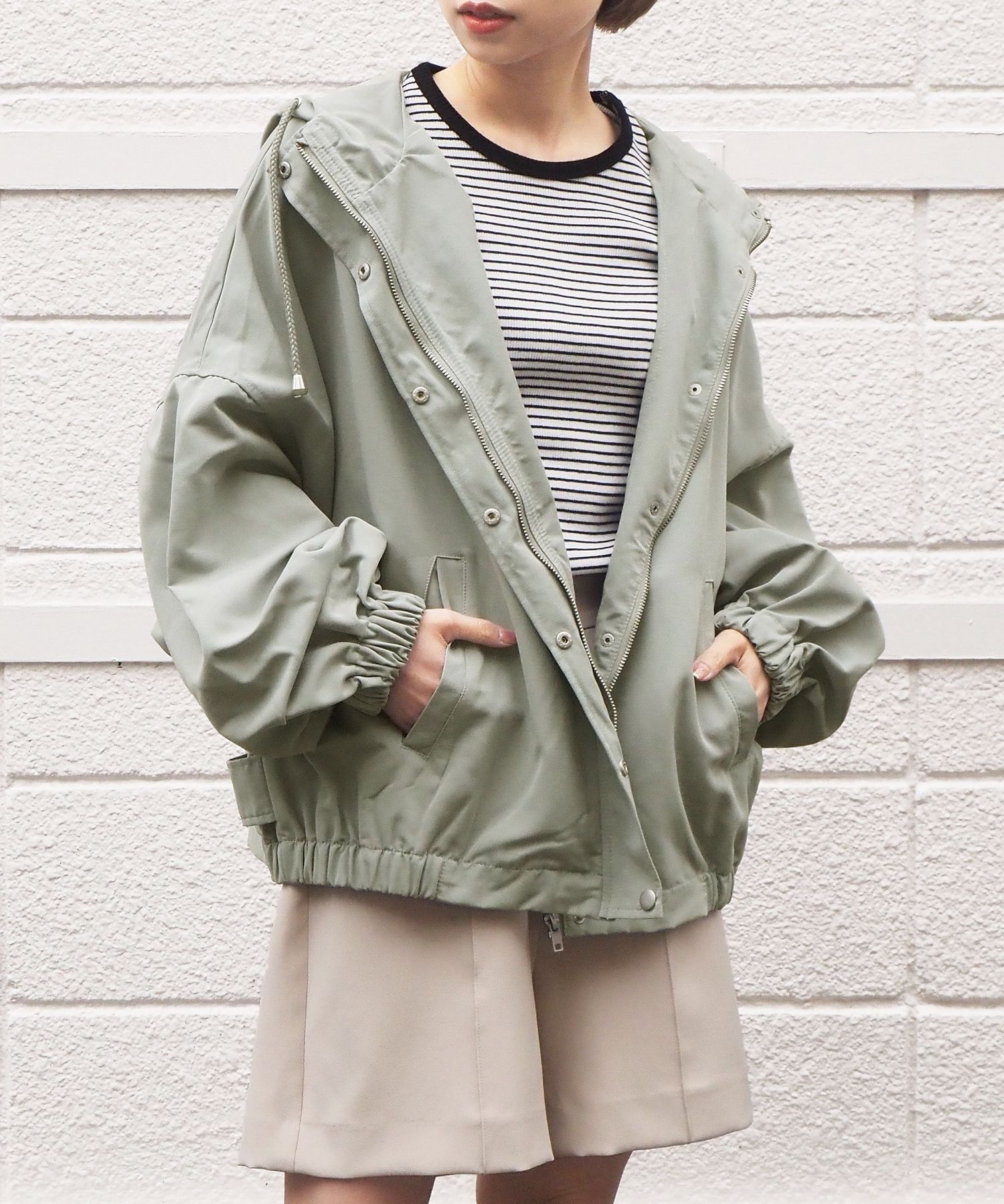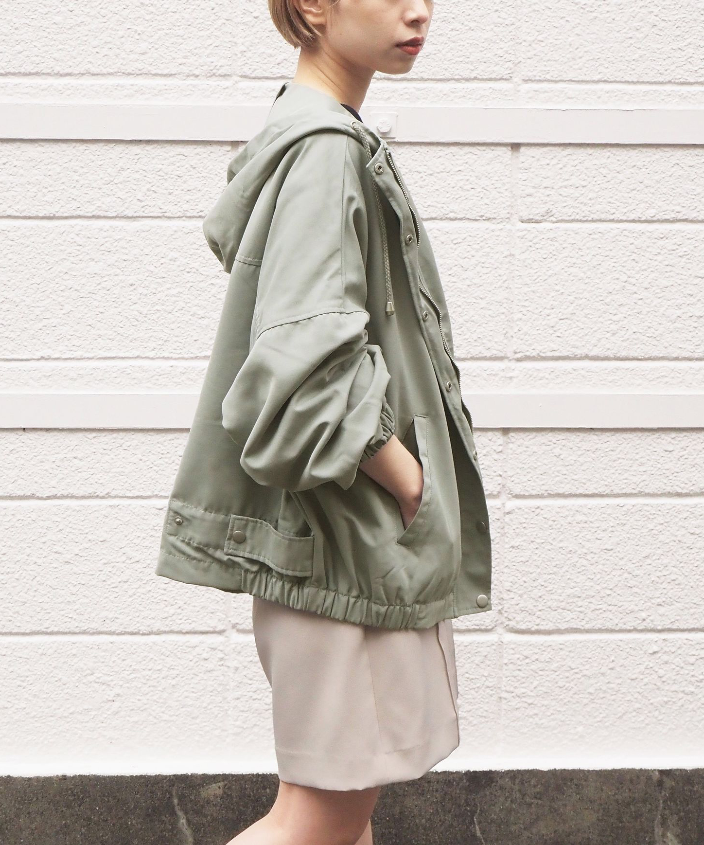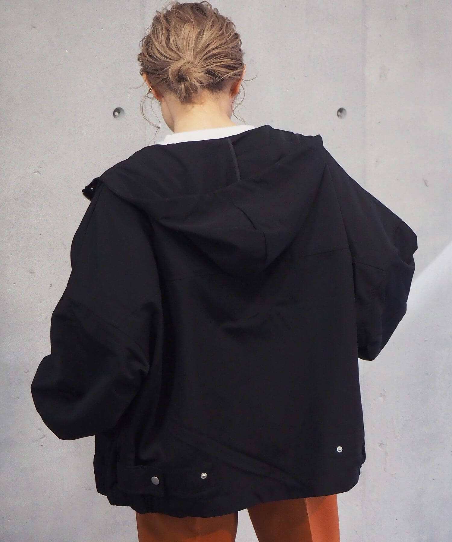 ・ジップを開いて着用していただくと、フードが広がり華奢見え効果大◎